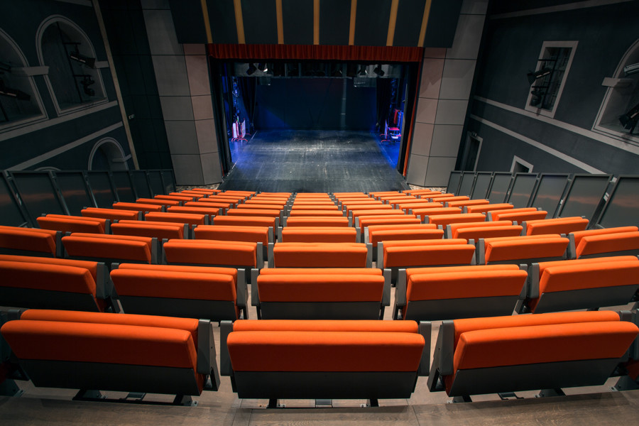 The Auditorium has a cantilevered roof and it is designed as a symmetrical response to the roof over the inner courtyard of the monastery, i.e. over the closed part of the theatre. The roof also carries the lighting equipment of the venue.