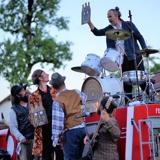 Predstavo Mesarica uprizarja pet igralcev, animatorjev in hkrati glasbenikov. Predstava nosi tako elemente folklore kot tudi značilnosti moderne intermedialne uprizoritve. Namen projekta je pripeljati alternativno, satirično, živahno glasbeno predstavo v vsako slovensko vas. Poetiko ritmične dramaturgije, ki jo v svojih režijah razvija Matija Solce, izvajajo z dodelano predmetno-lutkovno animacijo, komunikacijo z občinstvom in s teatraličnim koncertom, tako da nastop izzveni kot mešanica kabareta, lutkovne predstave, velikih lutk in živega koncerta.